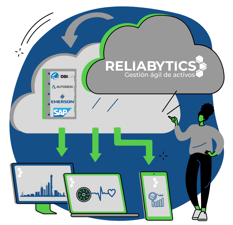 Integración de la data de los procesos disponibles en los diferentes sistemas operacionales, sin necesidad de instalar nuevos sensores. Reliabytics integra los datos de proceso relevantes a la Gestión de Activos.