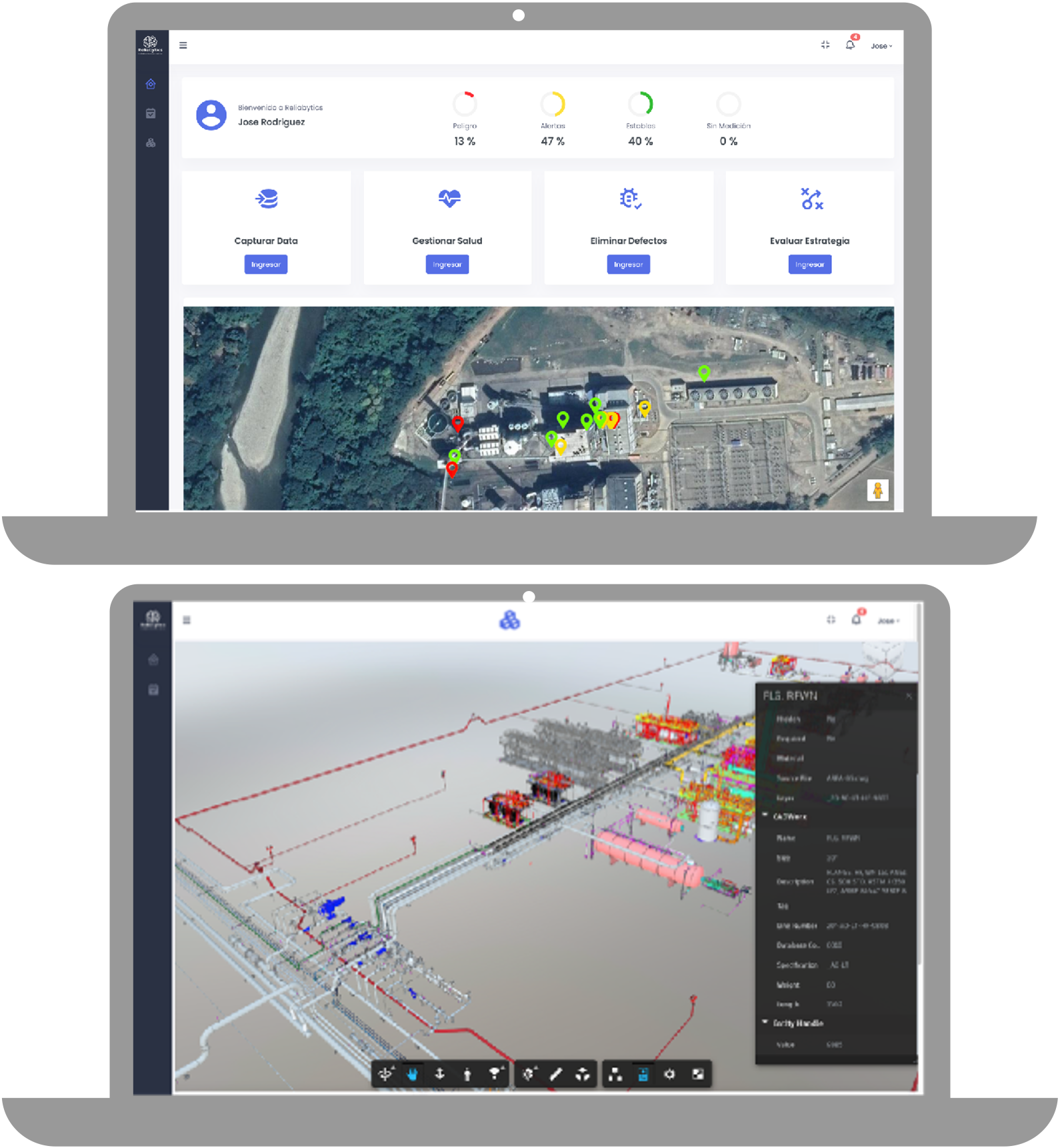 Reliabytics posee la capacidad de conjugar todos los requerimientos para creación, despliegue y monitoreo de Gemelos Digitales 3D como herramienta de última generación para la Gestión de Activos.